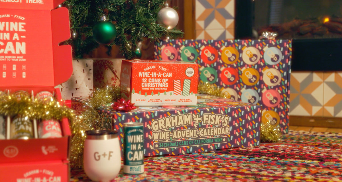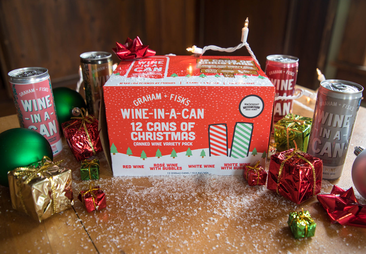 Forget the partridge in a pear tree — this is the real gift of Christmas cheer. The 12 Cans of Christmas features 12 (250ml / 8.4oz) cans of Graham + Fisk’s 100% California wine, including 3 cans each of Rosé with Bubbles, White with Bubbles, Red Wine, and White Wine.
